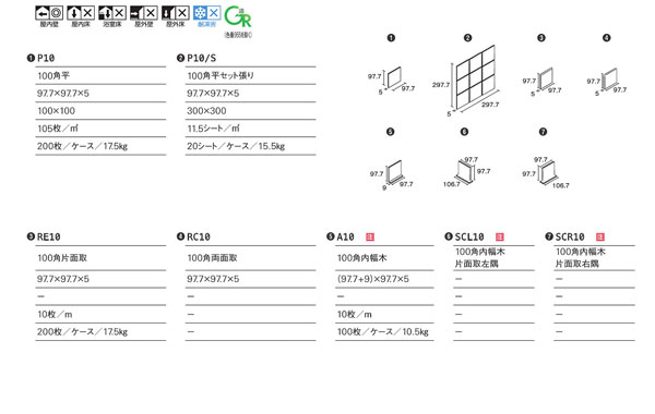 用 途 屋内壁◎・屋内床×・浴室壁×・浴室床×・屋外壁×・屋外床×・耐凍害×